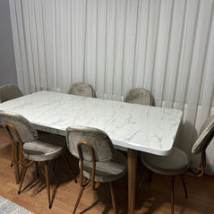 Günlük kullanımı ve modern tasarımı aynı çizgide buluşturan, mekânın merkezini tanımlayan masalar.